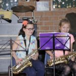 Na het koperwerk was de beurt aan de saxen. Samen met docente Henny Hordijk vertolkten Lieke en Hannah De vrolijke fluiter.