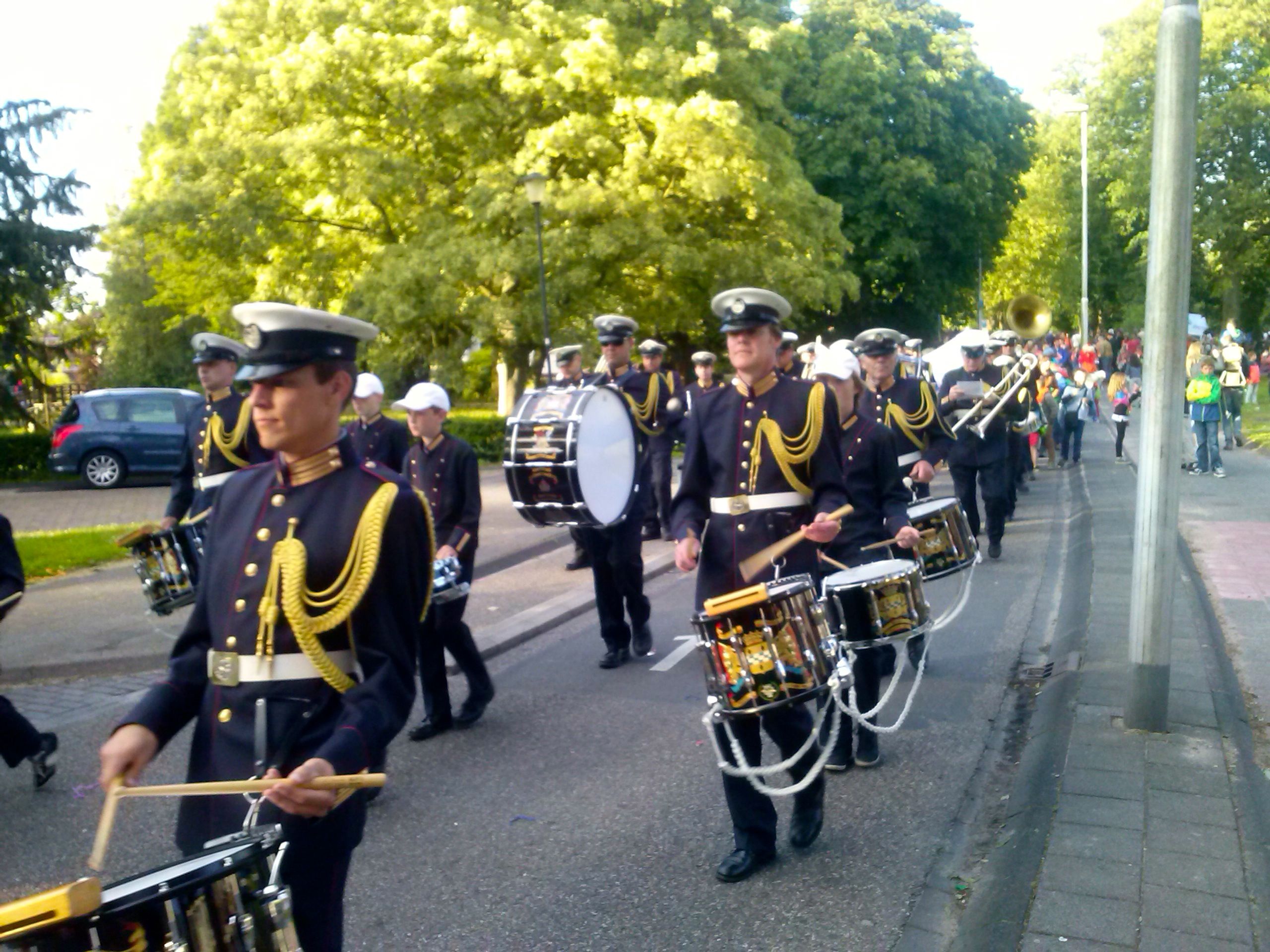 Traditiegetrouw loopt Excelsior, Fanfare en Drumband, mee in de optocht ter gelegenheid van de afsluiting van de JeugdAvond4daagse. Er liepen dit jaar tegen de 2.000 kinderen mee die begeleid werden door de Vriendschap, Excelsior, Kunst na Arbeid (Zegveld)Â en de Fanfare uit Driebruggen.