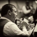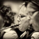 Lourens den Hollander soleerde op zijn bugel Gabriellas Sang van Stefan Nilsson en dat deed Lourens voortreffelijk. Dat laatste deed ook Menno Hordijk op trompet in de New Baroque Suite van Ted Huggins.