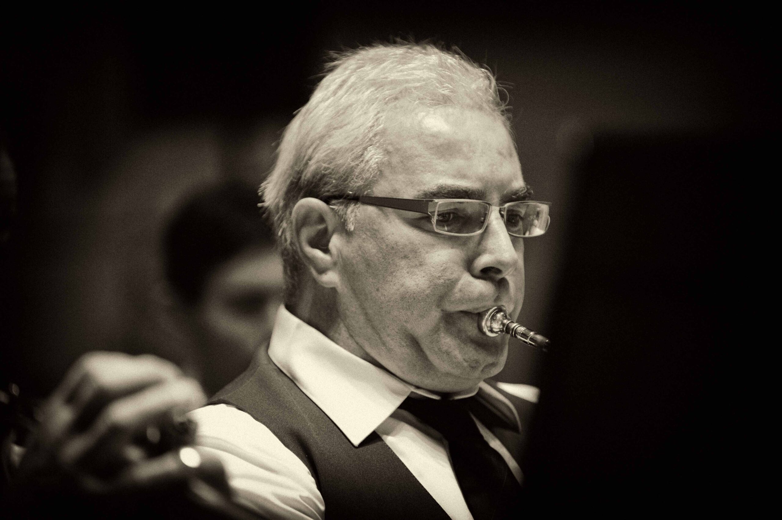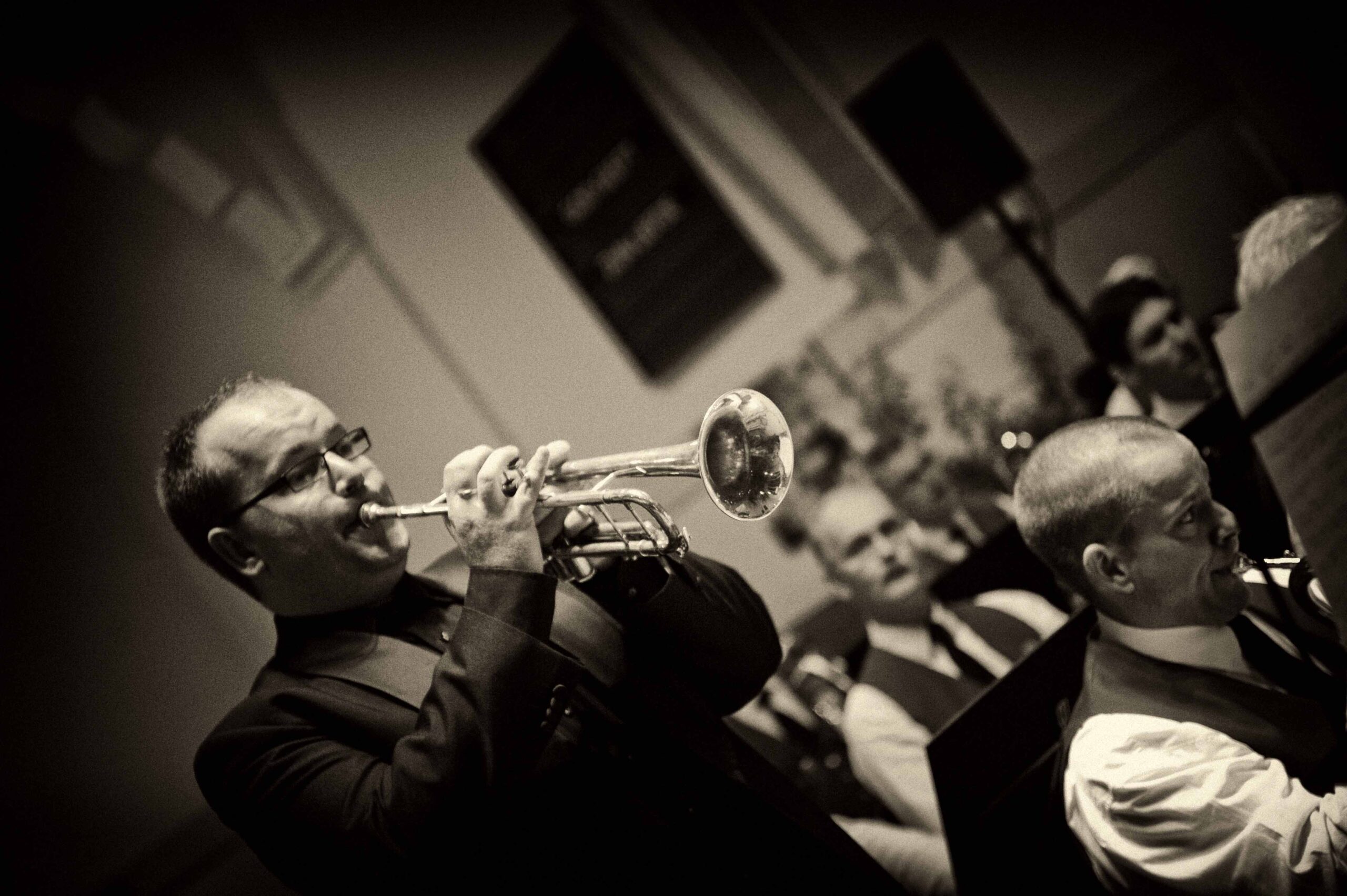 Nog even over de solisten. Uit eigen kring komt trompettist Marc Busscher voort. Hij heeft van zijn hobby via een afgeronde opleiding aan het Utrechts conservatorium zijn beroep gemaakt en liet dat horen ook, vrijdagavond 1 november in de Opstandingskerk. Twee nummers speelde hij solo, het Trebble Concerrto van Ted Huggens en La Virgin de la Macarena in het arrangement van Calvin Costi.