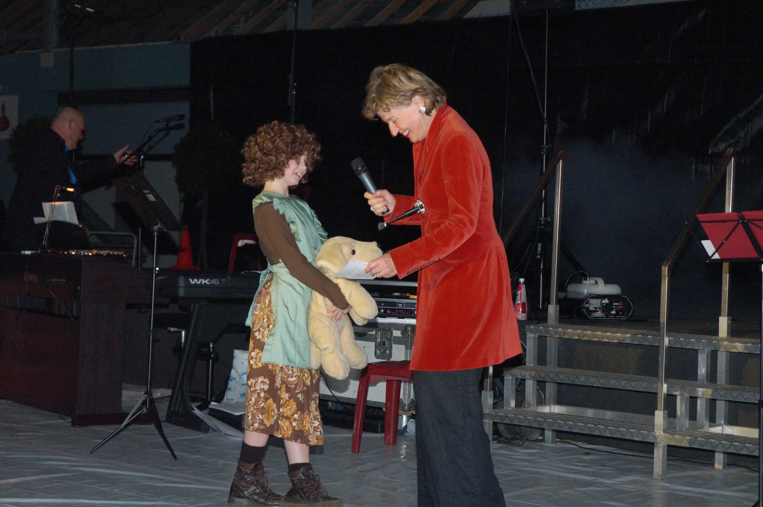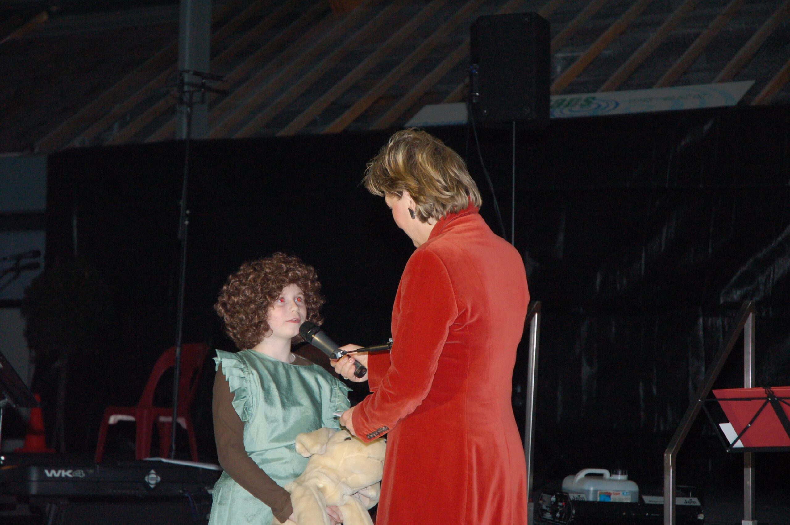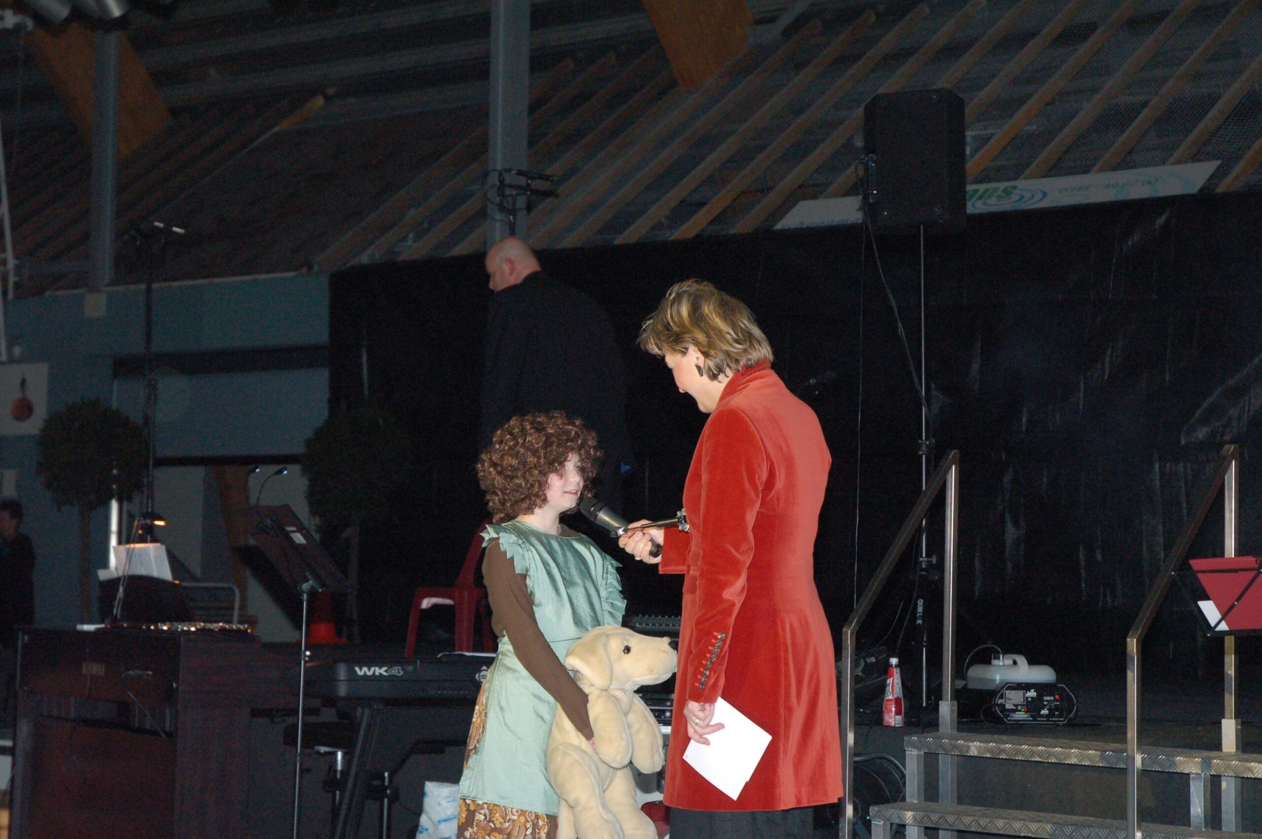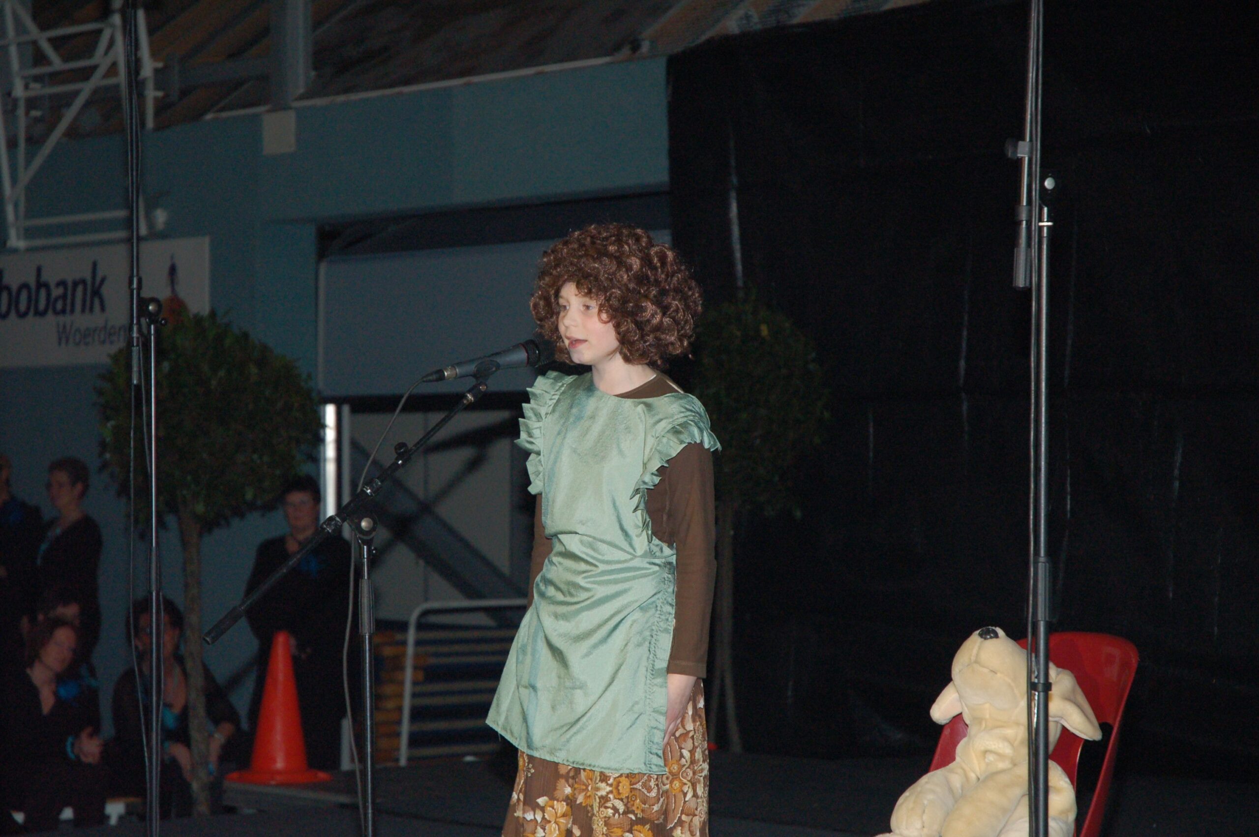 De 10-jarige Romy Hoogendoorn trad voor een avondje in de rol van haar favoriet Annie. In haar vermomming leek ze net weggelopen te zijn uit het weeshuis van deze musical en zong ze vol overgave over Annie’s verwachtingen voor een betere toekomst in het nummer Morgen. Haar stem vulde met gemak de grote concertzaal, dus dat belooft nog veel voor de toekomst.
