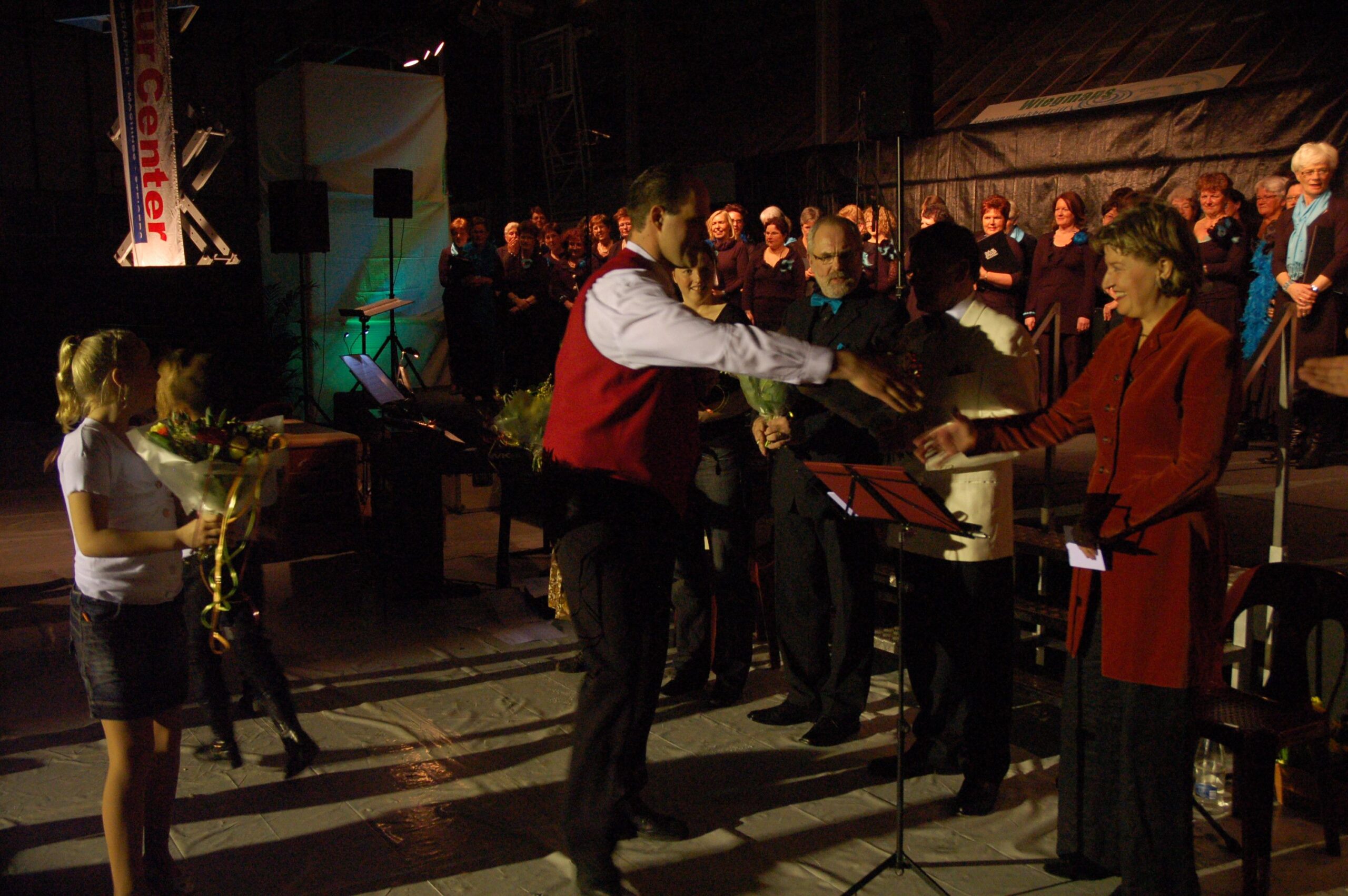 Het vrouwenkoor Kordaat heeft de hooggespannen verwachtingen ook ruimschoots waargemaakt. Ondanks dat dit 60-koppige koor hun dirigent van het toch beslist niet klein uitgevallen podium had verdrongen en hem daardoor enigszins uit het zicht verloor, gaven zij met evergreens als ‘Killing me softly’ en ‘Yesterday’ een goede aftrap. Heel indrukwekkend was ook hun vertolking van ‘Het Dorp’ van Wim Sonneveld, waarbij het publiek de geprojecteerde refreinen uit volle borst meezong. Toen dirigent Henk van Harmelen na de pauze weer goed in het licht was gezet, gaf Koordaat met de speciaal voor deze Proms ingestudeerde musicalnummers als ‘Over the rainbow’ en ‘One hand, one heart’ helemaal een staaltje van beste kunnen. Niet in de laatste plaats door de muzikale begeleiding en omspelingen van de gebroeders Van Vliet.
